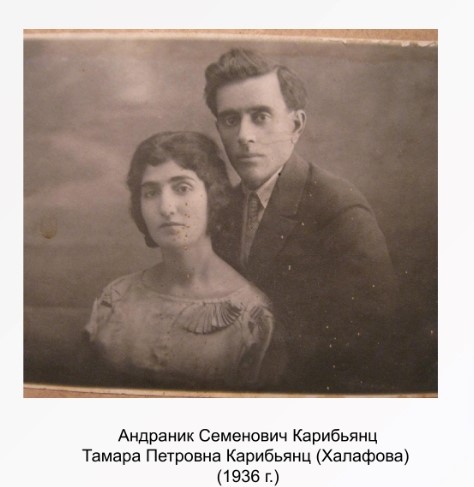Карибьянц Андраник Семёнович (дед Марины Владимировны) окончил Астраханский медицинский университет в 1927 году и трудился в качестве врача-хирурга в различных медицинских учреждениях города Астрахани и области. Андраник Семёнович прошел всю Великую Отечественную войну дивизионным хирургом, был награжден орденами и медалями.