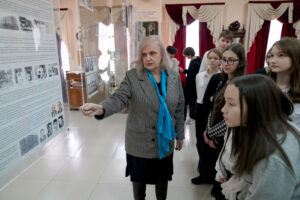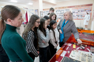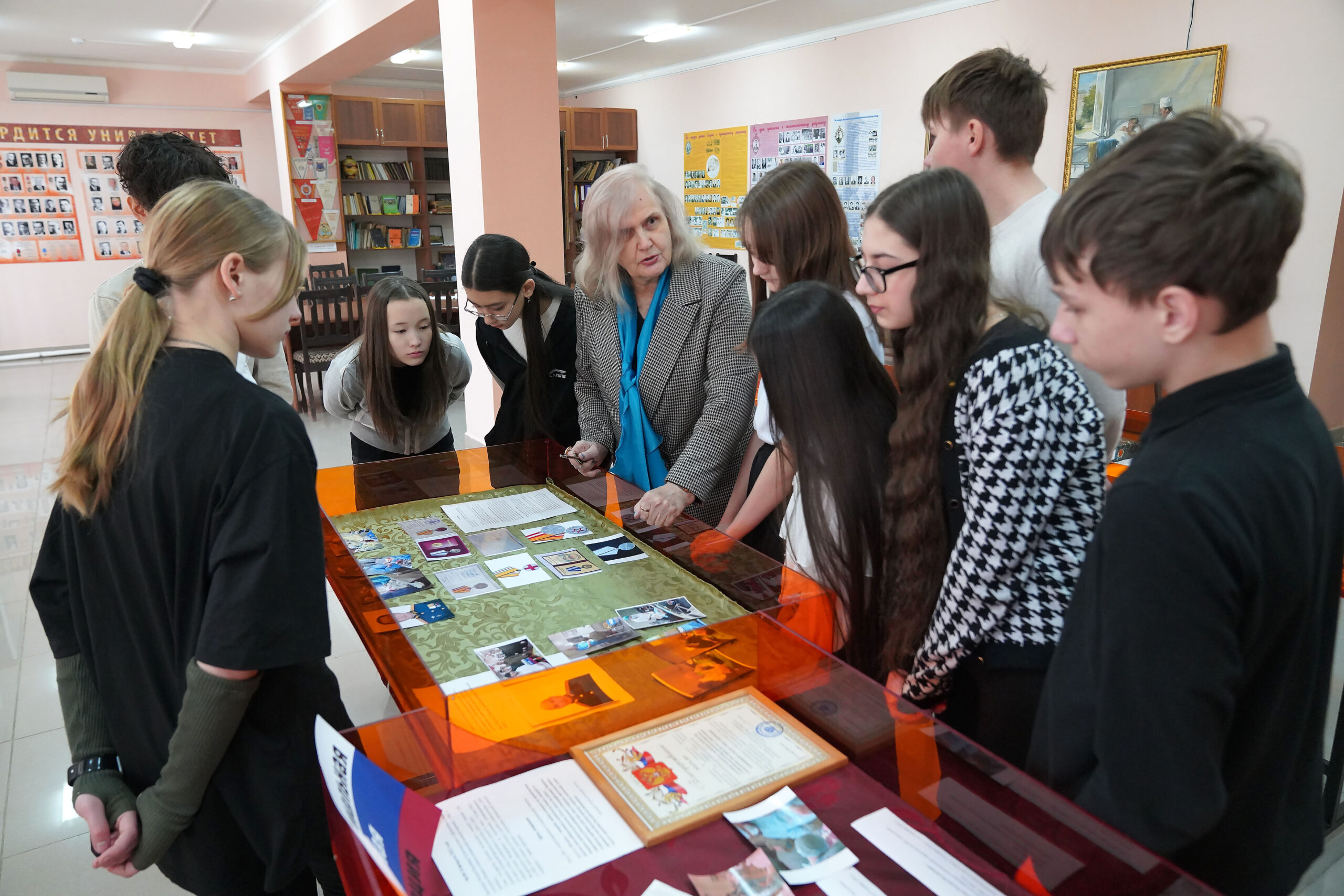 Директор Центра Татьяна Левина рассказала ребятам об истории возникновения и становления Астраханского ГМУ, о первых ректорах, о подвигах преподавателей и выпускников университета в годы Великой Отечественной войны.