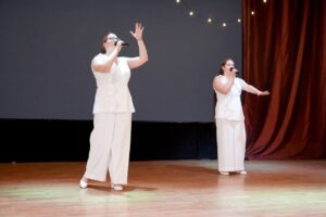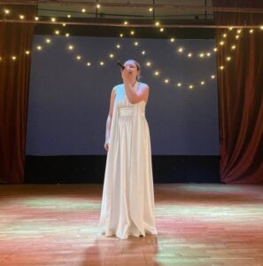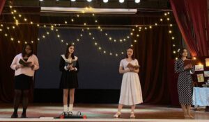 Программа вечера включала разнообразие жанров: тематические видеоматериалы и пронзительные монологи; классический вальс, патриотические и душевные песни,