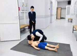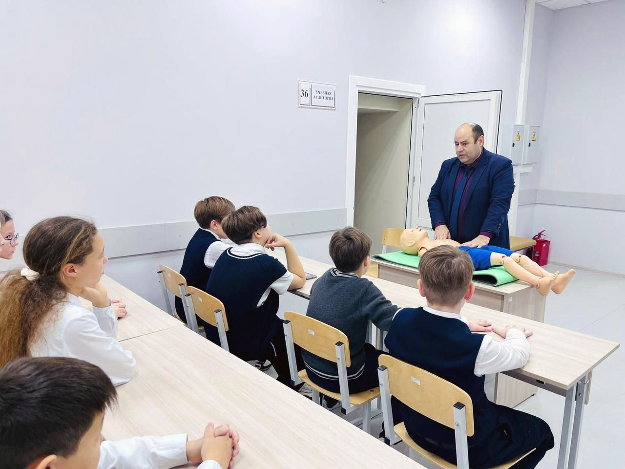 Школьники из Гимназии № 1 помимо знакомства с роботами-симуляторами в симуляционной клинике вуза, ощутили себя в роли настоящих спасателей. Под курацией руководителя Федерального аккредитационного центра Руслана Фалчари ребята приобрели навыки базовой сердечно-легочной реанимации и закрепили их на симуляторе.