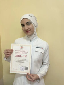 - Мадинат Дудаева, студентка 1 курса фармацевтического факультета, с докладом «Об особенностях морфологии рецептурной субскрипции» (научный руководитель — Уразалиева А.Р.).