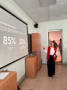 Мероприятие проходило в интерактивной форме и включало в себя лекционную часть, обсуждение и практические рекомендации. Волонтёры-медики подробно рассказали о последствиях курения для здоровья, объяснили, как никотин и другие вещества, содержащиеся в табаке, влияют на работу дыхательной, сердечно-сосудистой и нервной системы. Студенты получили информацию о том, как курение повышает риск развития хронических заболеваний, снижает физическую выносливость, ослабляет иммунитет и негативно влияет на внешность и общее самочувствие.