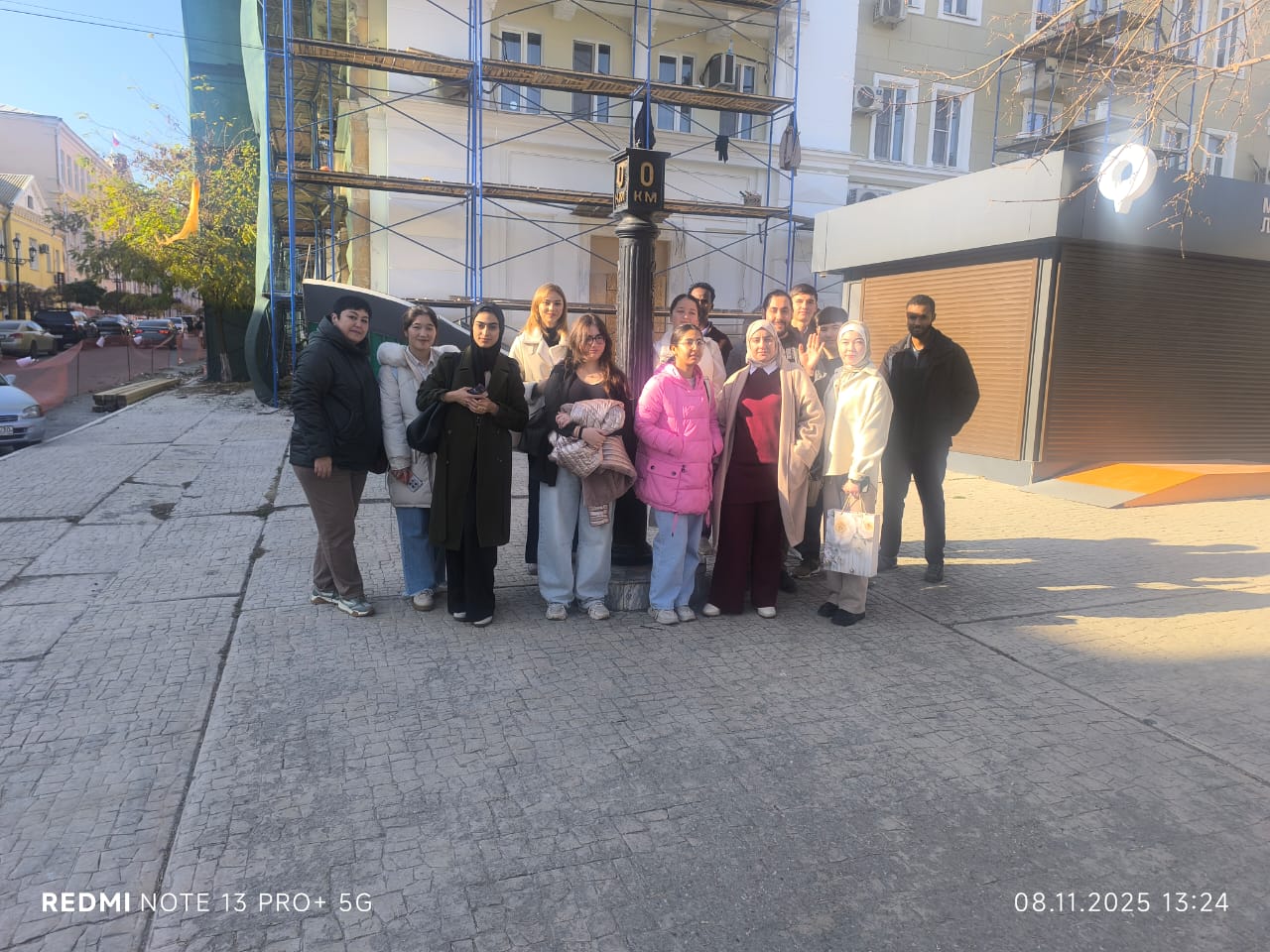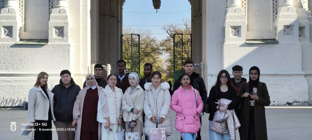 8 ноября 2025 года куратор группы № ПО2 Гайнутдинова Нурия Назиховна организовала экскурсию для слушателей подготовительного отделения по центральной улице Кирова и Астраханскому Кремлю. Учащиеся, приехавшие из разных уголков мира, среди которых были представители Туркменистана, Алжира, Кении, Палестины, Марокко и Ирана, получили уникальную возможность ознакомиться с историческим центром Астрахани.
