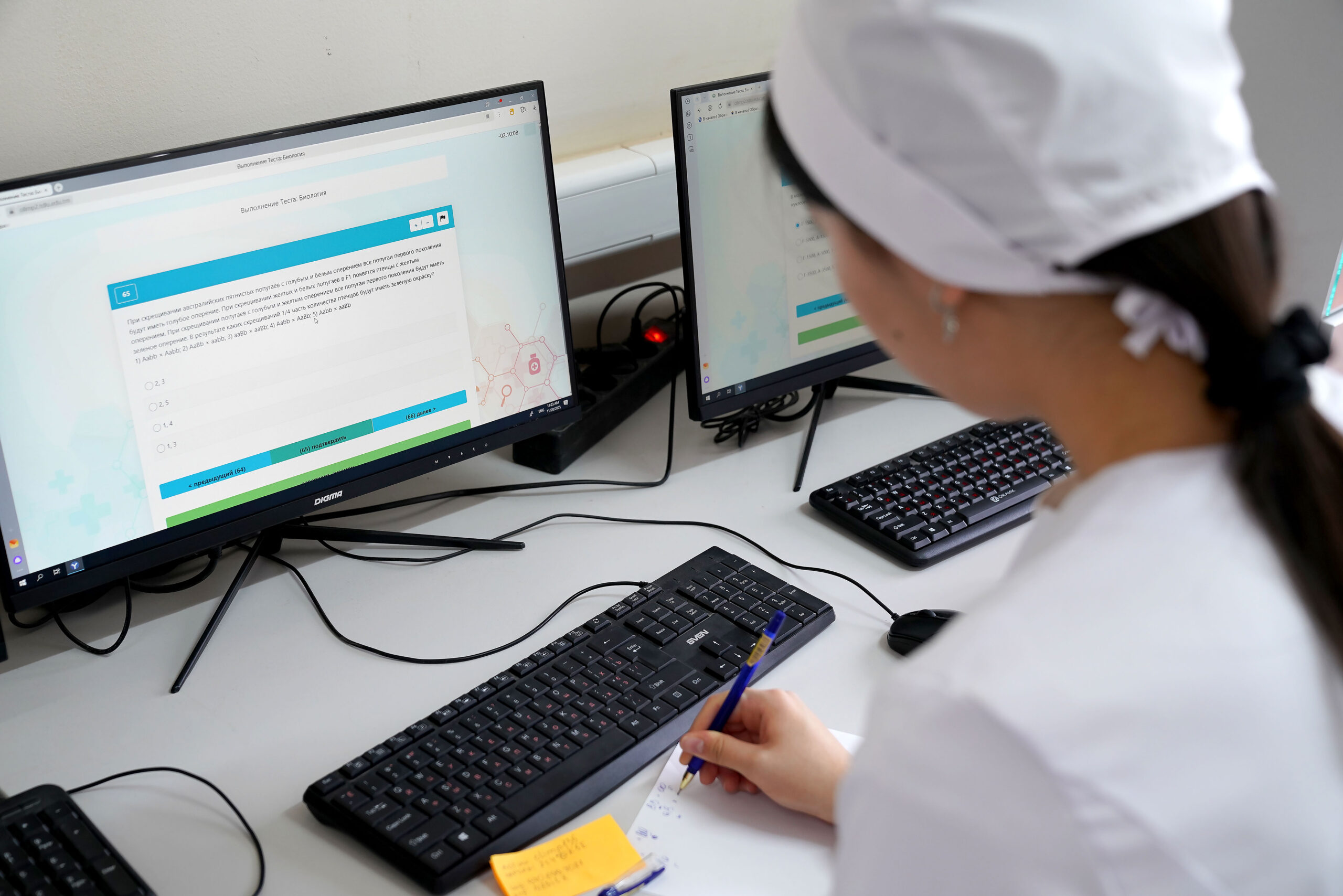 Студенты лечебного, педиатрического, стоматологического факультета отвечали на тестовые вопросы и решали ситуационные задачи по различным разделам биологии – цитологии, анатомии, ботанике, зоологии, биохимии, физиологии, генетике.