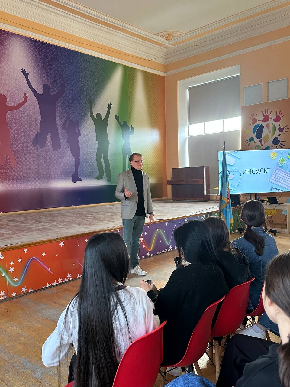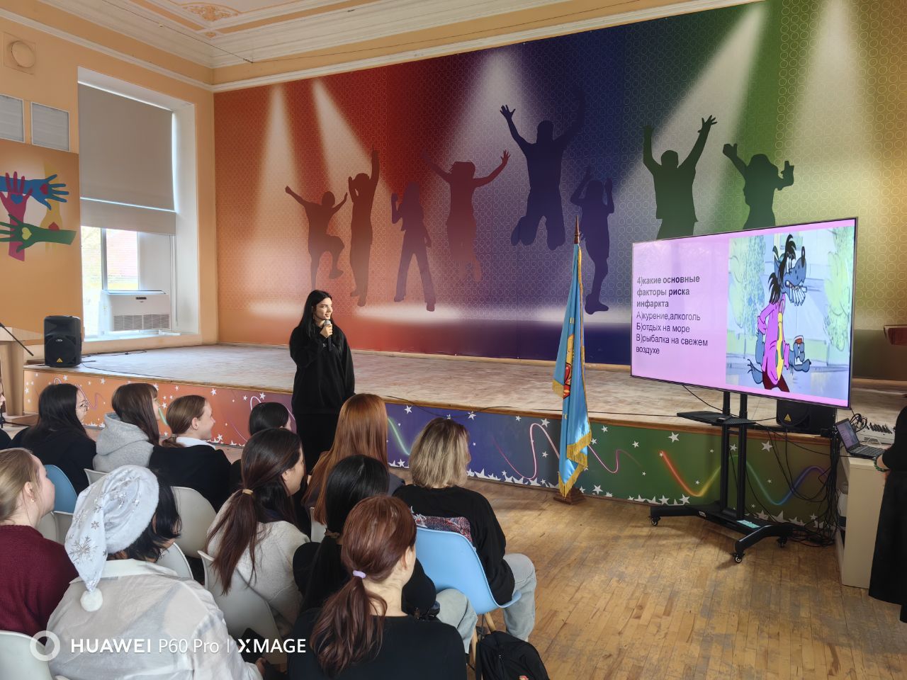 Студенты – волонтеры Астраханского ГМУ не только рассказали о ранних признаках инфаркта миокарда и инсульта и оказании первой помощи при этих состояниях, но и провели увлекательную викторину с учащимися колледжа.