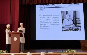 – Губанова Варвара и Смирнова Камила (103 леч.фак.) с докладом «Вишневский Александр Александрович ‒ выдающийся хирург, новатор в области лечения огнестрельных ран в годы ВОВ» – научный руководитель: старший преподаватель, к.м.н. Волошенко К.В.;