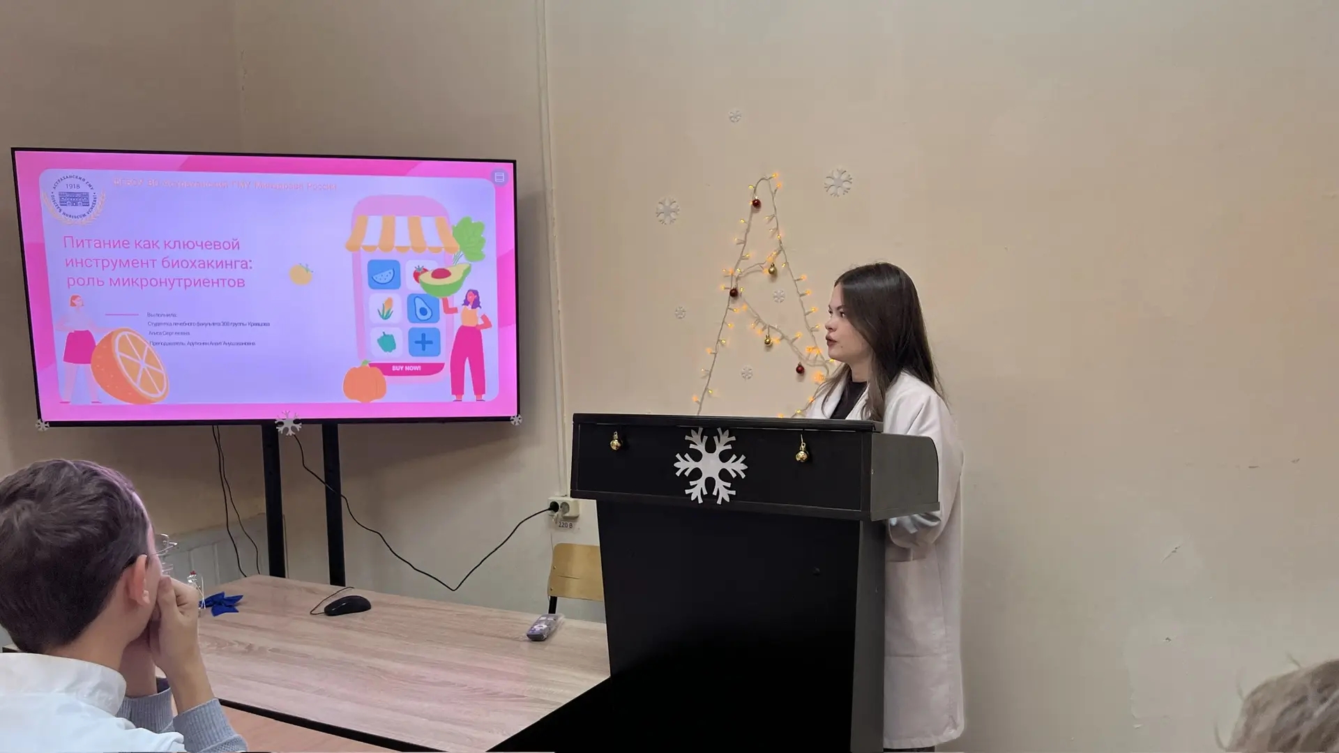 22 декабря на кафедре профилактической медицины и здорового образа жизни состоялось заключительное в уходящем году заседание МНО. Тема заседания: «Биохакинг: путь к здоровой и долгой жизни». Об основных видах биохакинга, применяемых в России и мире на сегодняшний день, а также перспективах развития различных направлений биохакинга в будущем рассказали студенты 320 группы лечебного факультета Корх М.А и Исрапилов А.Г. Студент 319 группы лечебного факультета Гамзабеков Г.З в своем выступлении проанализировал эффективность и безопасность применения ноотропов с позиций когнитивного биохакинга, а также провел сравнительный анализ между фармакологическими и нефармакологическими методами биохакинга, при оценке улучшения когнитивных функций у здоровых людей. Студентка 308 группы лечебного факультета Кравцова А.С рассказала о роли макронутриентов, как одного из ключевых инструметов биохакинга и эффективность их усвоения в различное время суток, а также совместимость с различными веществами. В заключении заседания научный руководитель МНО к.м.н ассистент кафедры профилактической медицины и ЗОЖ Наумов А.В подчеркул: