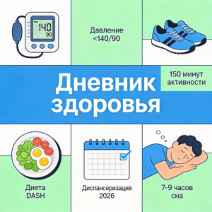 Для наглядности и последовательности врачи советуют вести «дневники здоровья»: записывать контрольные данные, приём и дозировки лекарств, тренировки, самочувствие. Регулярно проходить диспансеризацию, при тревожащих симптомах обращаться к врачу. Эти простые меры снижают смертность от ХНИЗ на 80%. Начните с малого: запишитесь на диспансеризацию в 2026 году!