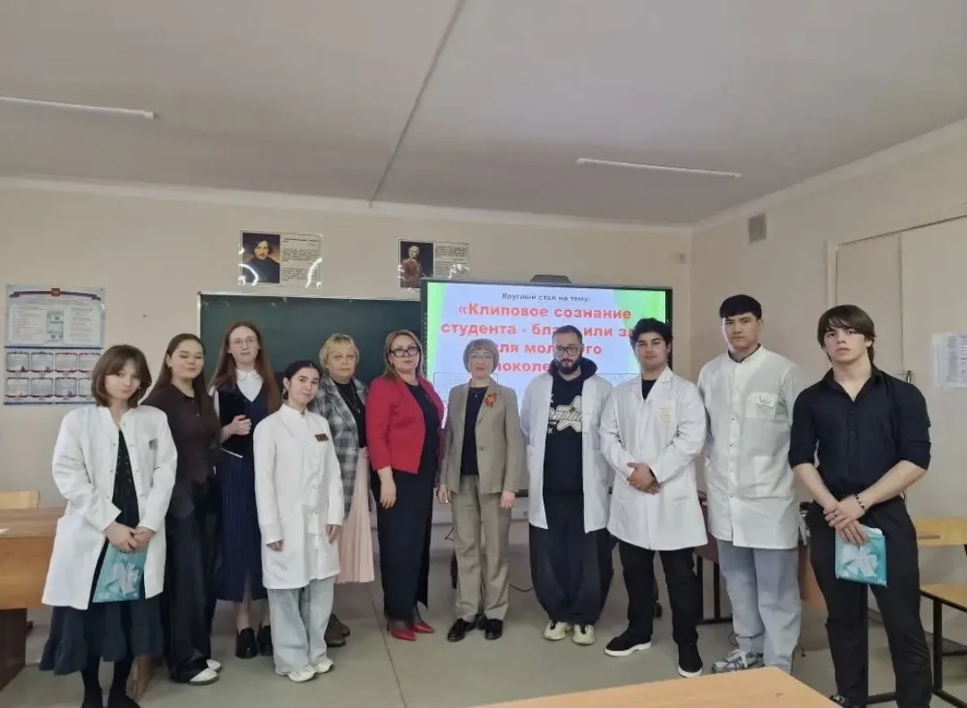 В дискуссии участвовали российские и иностранные студенты 1-3 курсов, а также слушатели подготовительного отделения. В заседании круглого стола в качестве эксперта приняла участие старший преподаватель кафедры психологии, к. псих. н. Досаева Р.Н., которая рассказала студентам о влиянии клипового мышления на профессиональное становление будущих врачей, клинических психологов, включая вопросы концентрации внимания, эмпатии и способности к системному анализу. Итогом круглого стола стало осмысление двойственной природы данного феномена: при очевидных преимуществах — высокой скорости обработки информации и многозадачности — он требует целенаправленного развития критического мышления, речевой культуры и навыков глубокой интеллектуальной работы.